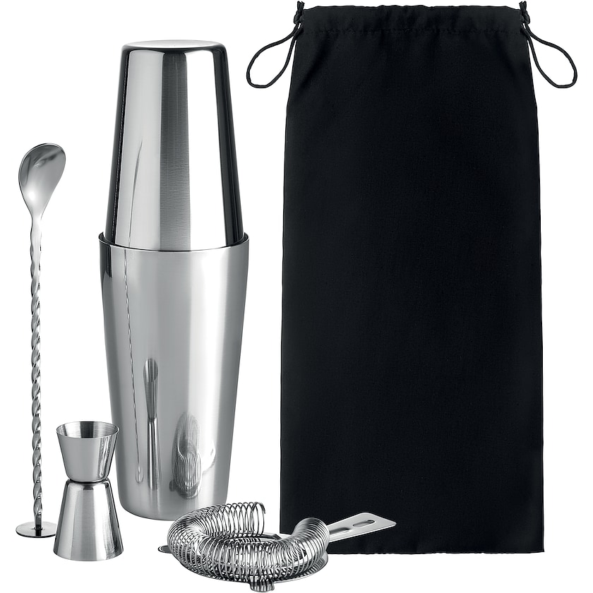 Cocktailset som låter dig blanda perfekta drinkar. Ett trevligt set till alla som älskar att blanda (och dricka) goda drinkar. Trycket kan antingen ske på förvaringspåsen (maximalt fyra tryckfärger och 150 x 100 mm tryckyta) eller på shakern (tryck i en färg och 180 x 70 mm tryckyta).
