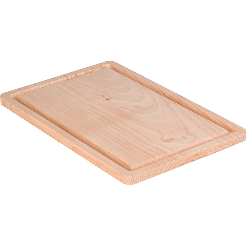 Stor skärbräda av äkta trä. Skärbräda Loubet har en försänkt fåra för avrinning. Märkning sker med tryck eller lasergravyr.