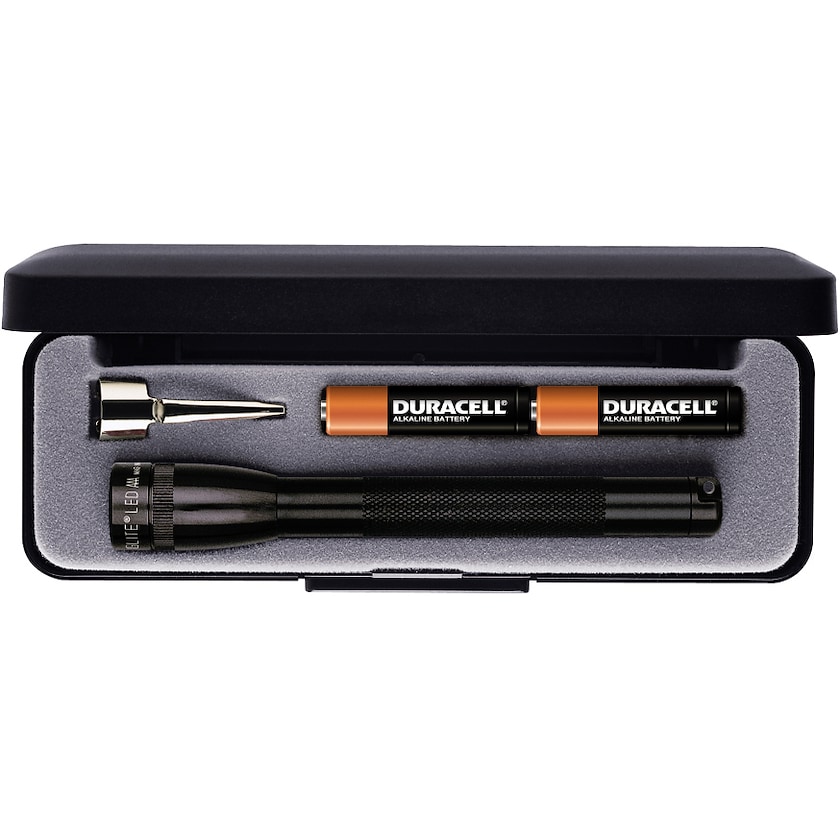 Den klassiska Minimag-ficklampan. Leveras i presentask med batterier. Ficklampan har glödlampa.