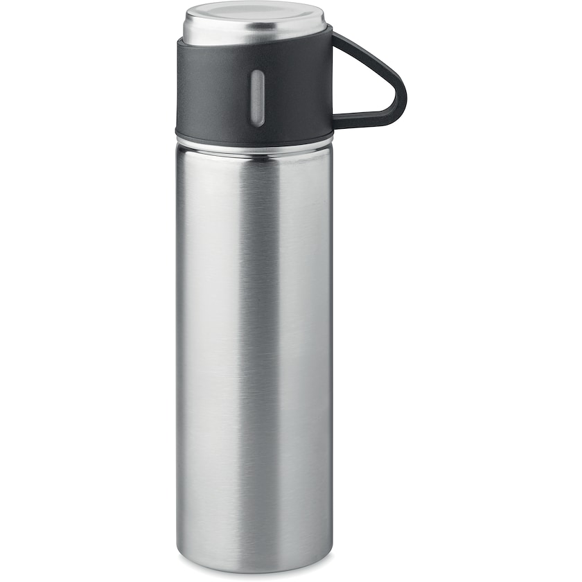 Termos av rostfritt stål med kopp med handtag. Termosen rymmer 42 cl och koppen 15 cl. Läckagefri.