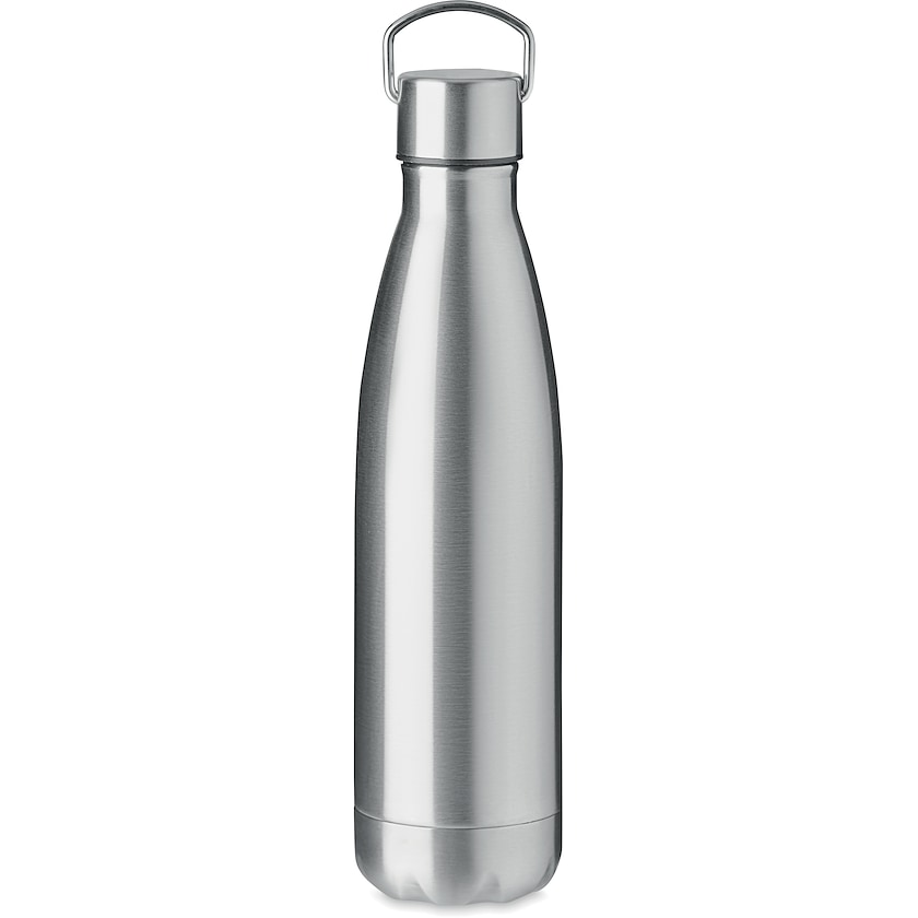 Vacker termosflaska i rostfritt stål. Välj mellan tryck och lasergravyr. I locket finns ett handtag som gör att termosen är lätt att bära. Läckagefri.