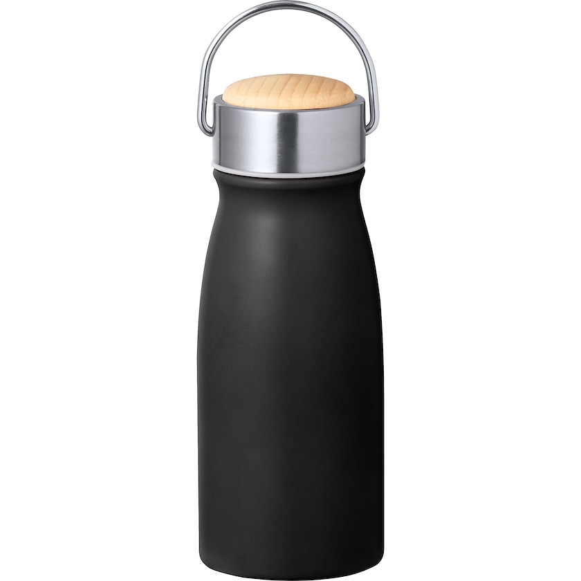 Kompakt termos av återvunnet rostfritt stål. Rossburg rymmer 35 cl. Lockets ovansida är gjort av trä. Välj mellan tryck eller lasergravyr.