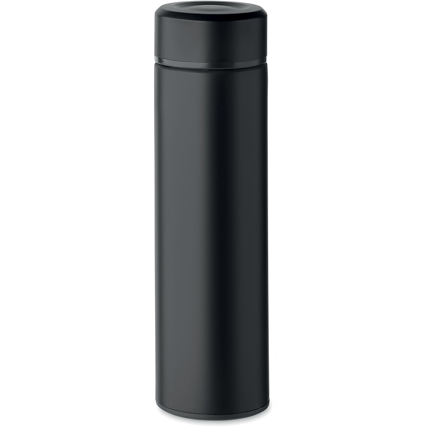 Termos av 90% återvunnet rostfritt stål och 10% rostfritt stål. Termosen har dubbla väggar och är helt läckagefri.