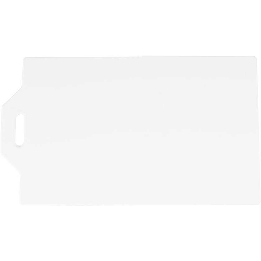 Rektangulär bricka med förtryckt baksida med plats för adressuppgifter.
