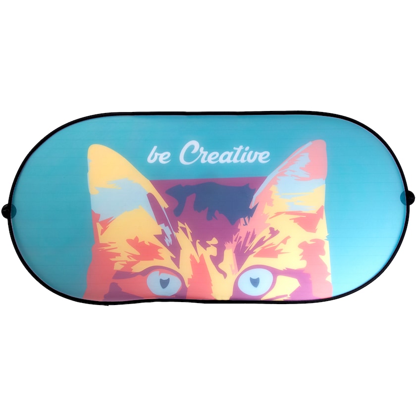 Digitaltryckt solskydd för bilens framruta. Solskyddet är möjligt att vika ihop när det inte används. Levereras med sugproppar. Hela solskyddet trycks med digitaltryck.