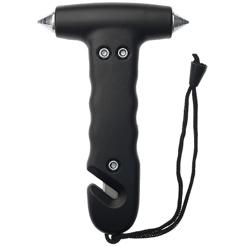 Prisvärd svart nödhammare med bälteskärare. En produkt som kan rädda liv.