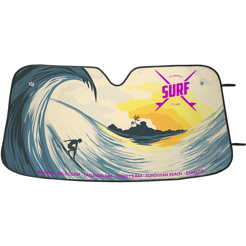 Solskydd för bilens vindruta med tryck över hela ytan. Solskydd Lockhart är tillverkat av polyester med baksida med PU samt två lager med bubbelfolie av aluminium. Solskyddet fästs med två sugproppar. Eftersom solskyddet tillverkas i fabrik efter beställning är leveranstiden längre än normalt.