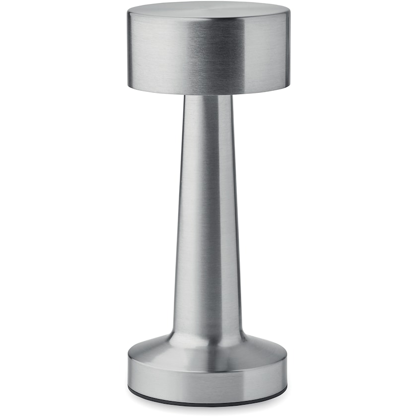 Trådlös lampa av metall med touchfunktion. Lampan har 12 dimbara LED-lampor som kan har tre ljuslägen. Efter full laddning kan lampan användas i 6 timmar. Laddkabel medföljer.