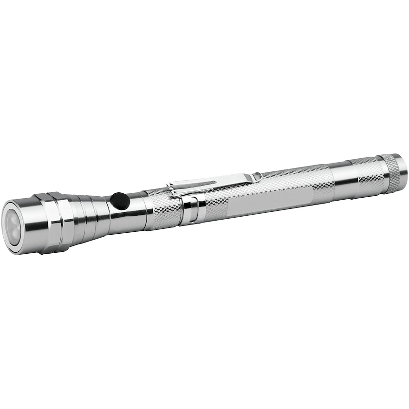 Teleskopficklampa med 3 st LED-lampor. Electra är försedd med magnet och kan vinklas och på så sätt ge ljus i de mest svåråtkomliga utrymmena. Ficklampan är tillverkad helt i metall.