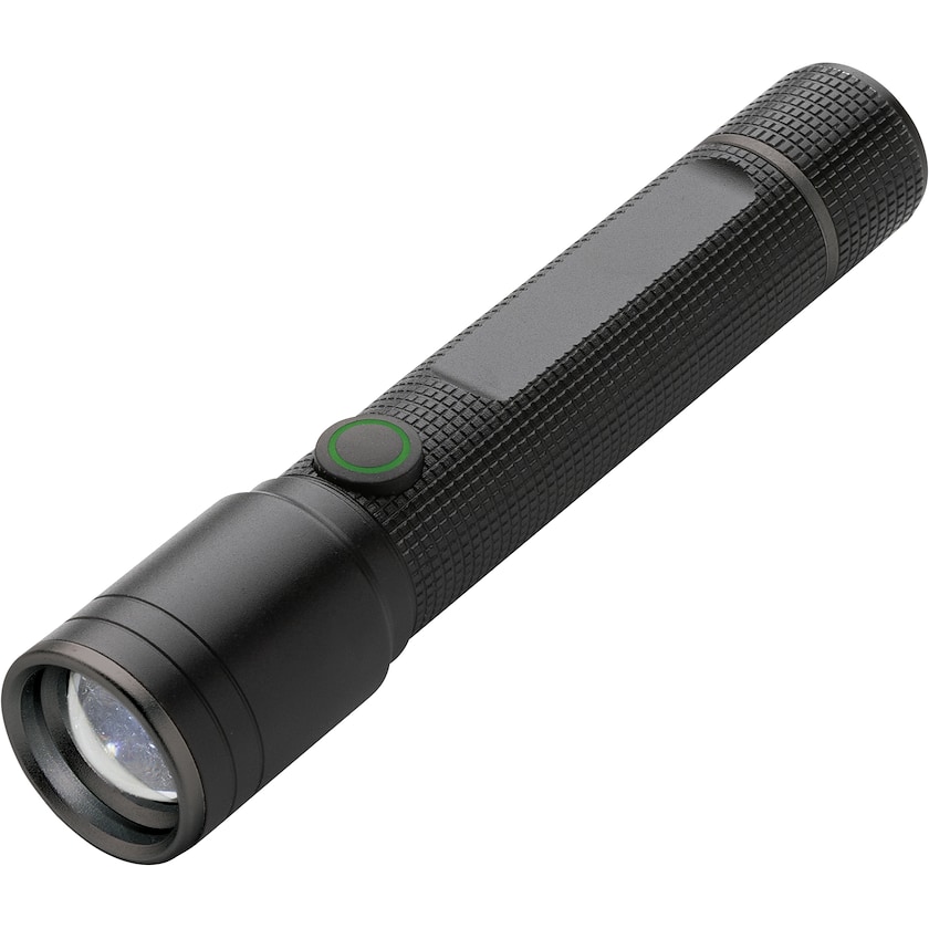 Kompakt och mycket funktionell ficklampa av hög kvalitet. Ficklampan laddas via USB-uttag, har 100 lumen ljusstyrka och en ljuskägla som når 100 meter. Tillverkad av återvunnen aluminium. Ficklampan har IP4-certifiering vilket innebär att den utan problem klarar bruk utomhus. Ljuset har fem olika lägen.