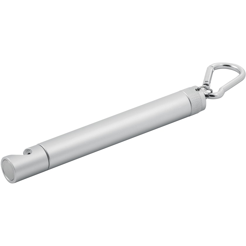 Ficklampa med extra stark lampa av typen COB LED. Ficklampan har dessutom en kapsylöppnare och är försedd med karbinhake och magnet. Drivs med 5 st LR44-batterier (ingår).