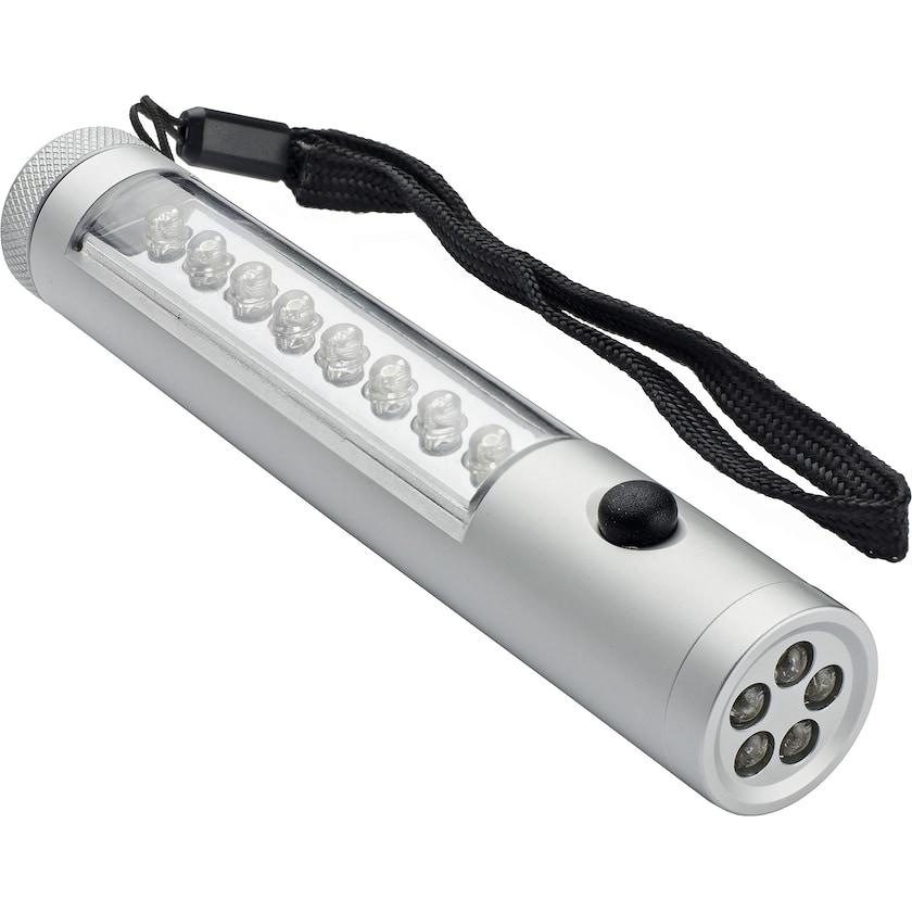 Nödficklampa som passar för att ha i bilen. Själva ficklampan har 5 st LED-lampor och i handtaget finns ytterligare 8 st LED-lampor i vit och röd färg. Tack vare en magnet kan nödficklampan fästas på t ex bilen vid en nödsituation eller om du behöver utföra en mindre reparation. Batterier ingår ej.
