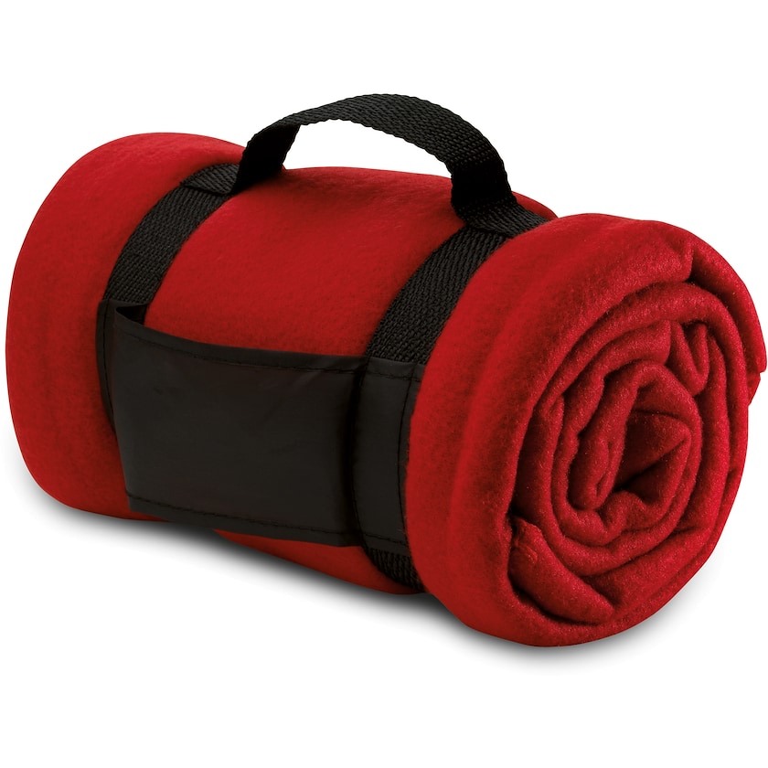 En varm fleecefilt för kyliga dagar! Trycket sker på bärhandtaget.