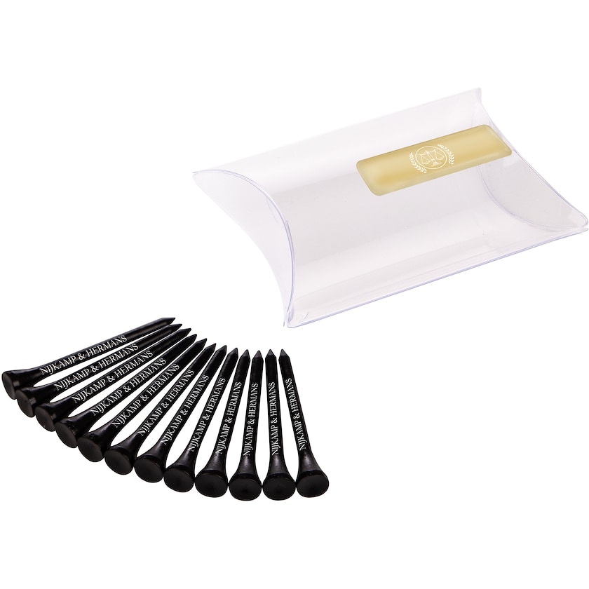 Set med 12 st golfpeggar i en transparent förpackning. Tryckpriset inkluderar tryck på alla 12 golfpeggar samt på förpackningen.