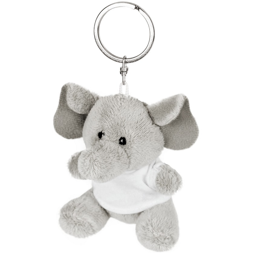 Mysig elefant på nyckelring. Elefanten har en vit t-shirt där trycket sker. T-shirten levereras separat från gosedjuret.