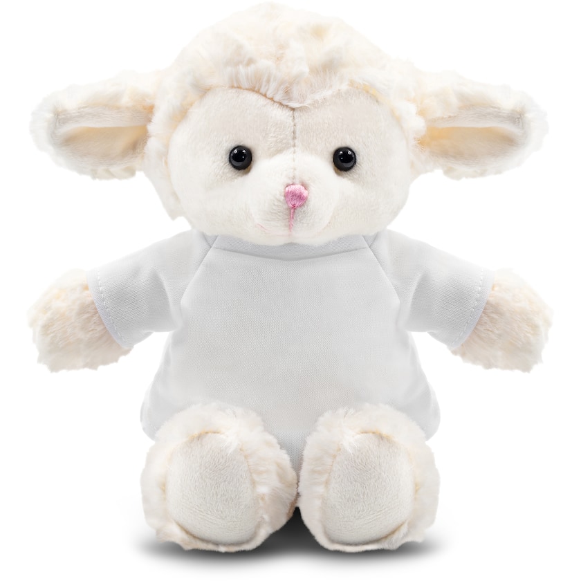 Ett gulligt lamm med vit t-shirt. Trycket sker på t-shirten (som packas separat från lammet). Ett gulligt lamm som är väldigt kramgo.