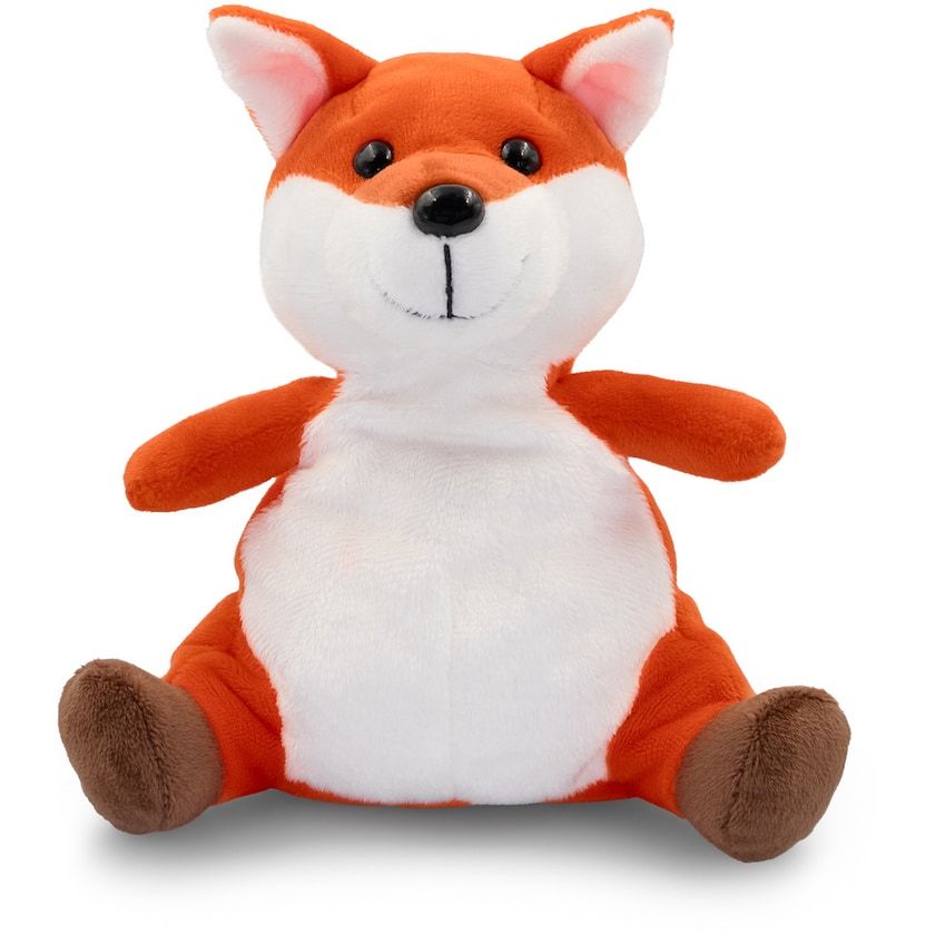 Gosedjur av plysch föreställande en räv. Trycket sker på rävens mage. Tack vare små invändiga kulor så sitter räven lättare upprätt.