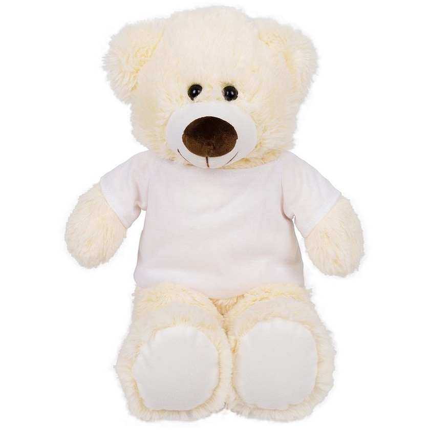 Ljus nallebjörn med vit t-shirt med tryck. T-shirten levereras separat förpackad. En mysig nallebjörn i lagom storlek.