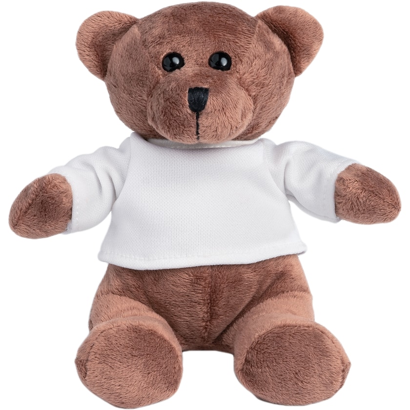 Nallebjörn med vit t-shirt. Trycket sker på t-shirtens fram- eller baksida. En gosig och kramgo nallebjörn!