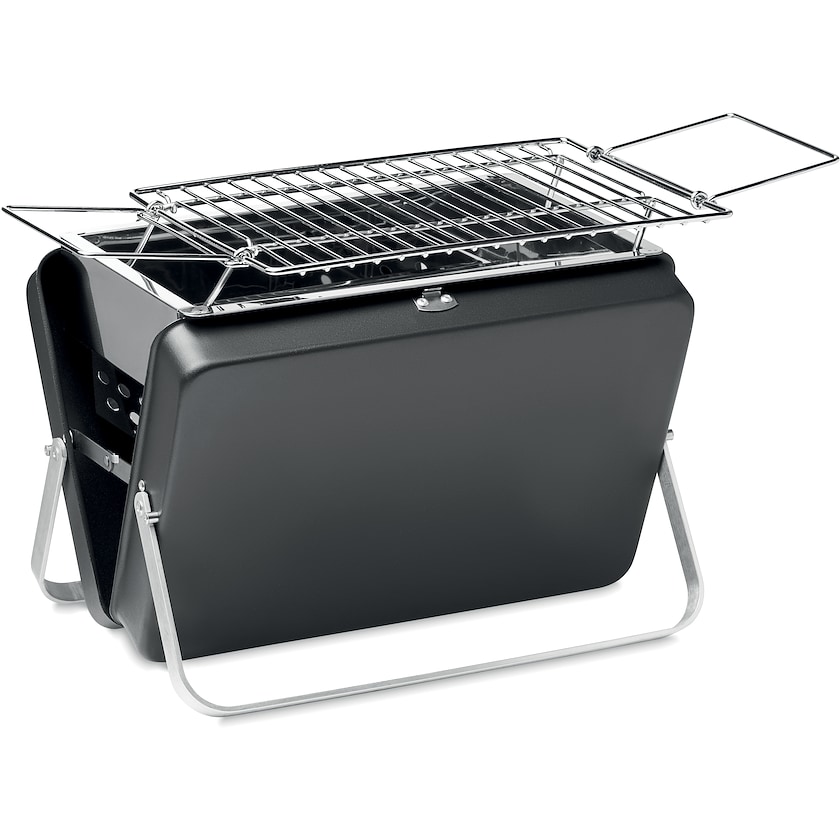 Portabel grill av rostfritt stål. Grillen viks smidigt ihop när den inte används. Perfekt för utflykten! Märkning sker med lasergravyr.