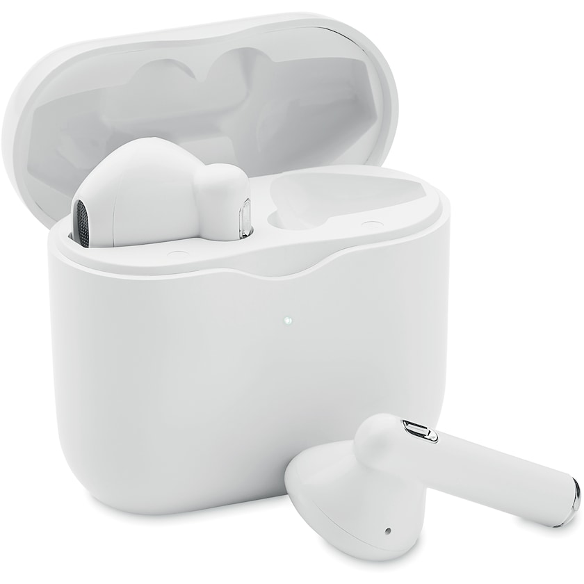 Trådlösa hörlurar med mikrofon. Hörlurarna är av typen TWS, True Wireless Stero 5.3. Speltiden är 4 timmar på en laddning.