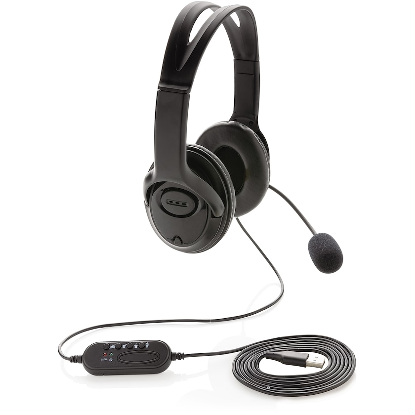 Headset med mikrofon. Raynham är designad för professionellt bruk och är bekväm även för lång tids användning. Kabeln är 2 meter lång och det finns även en mute-knapp.