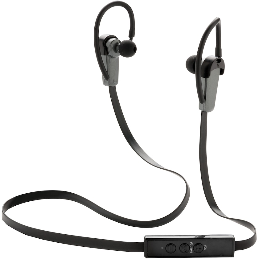 Trådlösa Bluetooth-hörlurar som är optimerade för sport och utomhusaktiviteter. Hörlurarna är konstruerad för att tåla tuffa tag. Klarar 4 timmars användning på en uppladdning. Varje uppladdning tar ca 1 timme. Levereras med ett högkvalitativt förvaringsfodral i en snygg presentlåda. Öronsnäckor i olika storlekar medföljer. Trycket sker på förvaringsfodralet.
