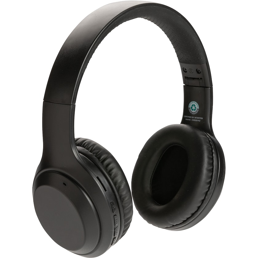 Vikbara hörlurar av återvunnen plast. Hörlurarna är trådlösa och använder BT 5.0 för supersmidig anslutning och längre speltid. Speltiden är 6 timmar på en laddning. Hörlurarna har mikrofon så att telefonsamtal kan tas emot.
