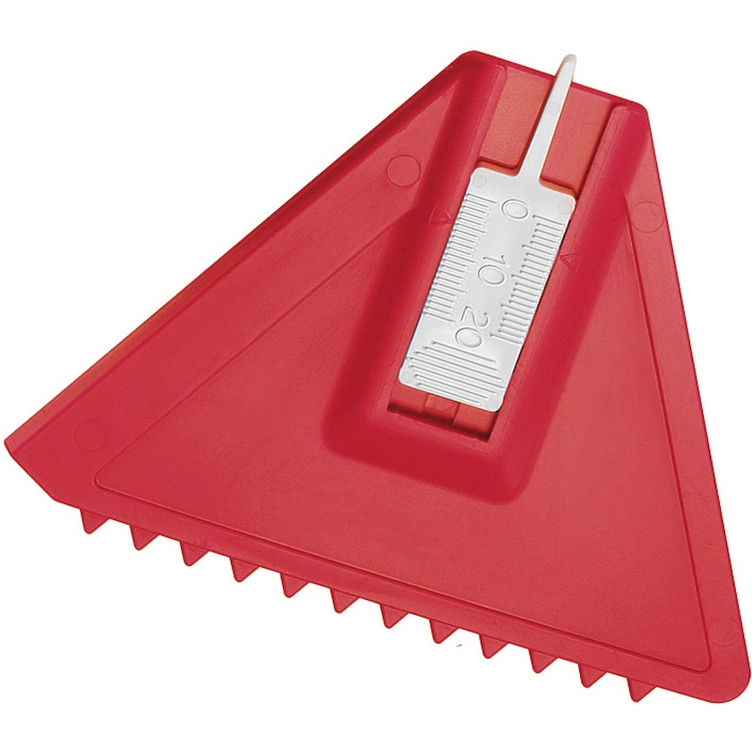 Triangulär isskrapa med däckmönsterdjupsmätare.
