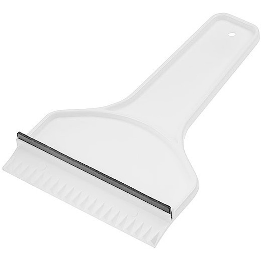 Isskrapa i plast med skönt grepp och gummilist.
