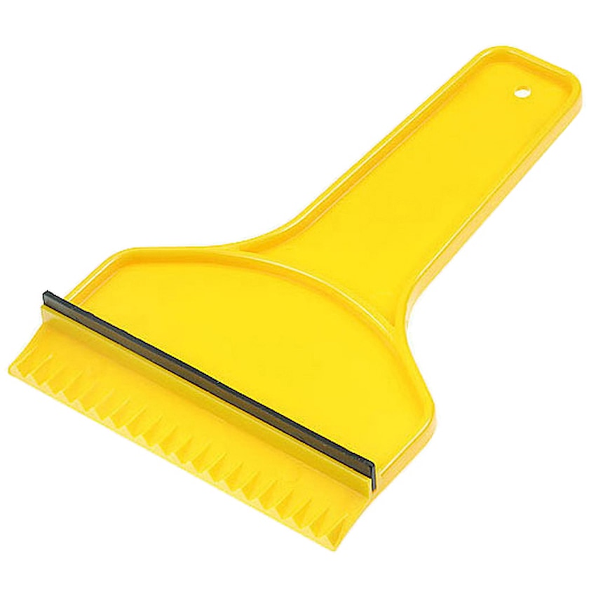 Isskrapa i plast med skönt grepp och gummilist.