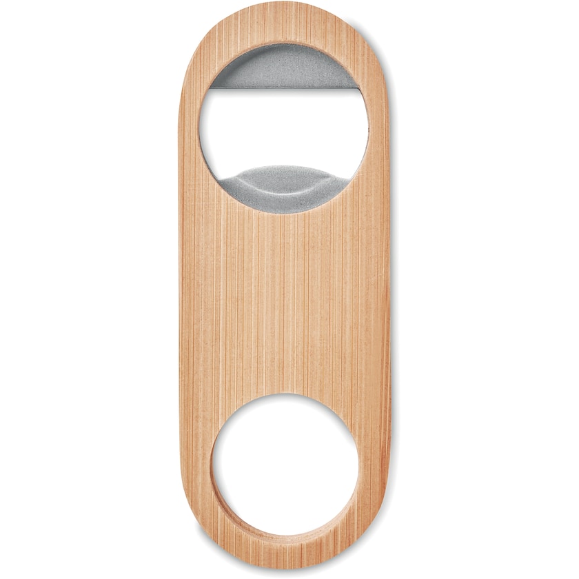 Öppnare av rostfritt stål och bambu. En elegant öppnare som är en fröjd att använda. Märkning kan antingen ske med tryck eller lasergravyr.