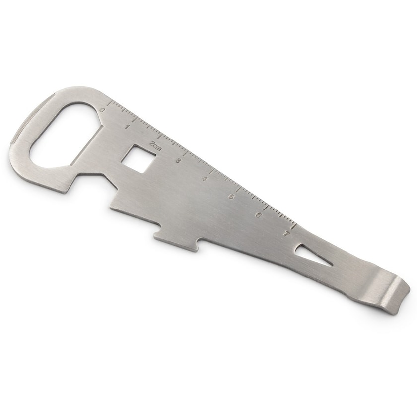 Kapsylöppnare med totalt sju funktioner. Fungerar som kapsylöppnare, konservöppnare, locköppnare, linjal, spikborttagare samt två typer av skiftnyckel.
