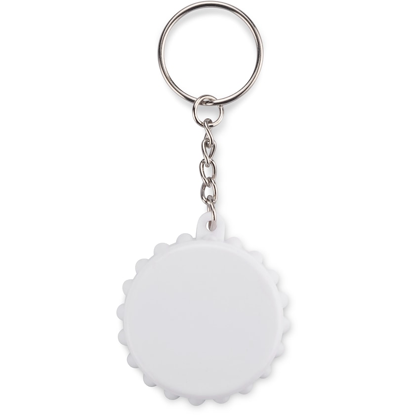 Kapsylöppnare fäst på en nyckelring. Myles har en kul form som för tankarna till en kapsyl.