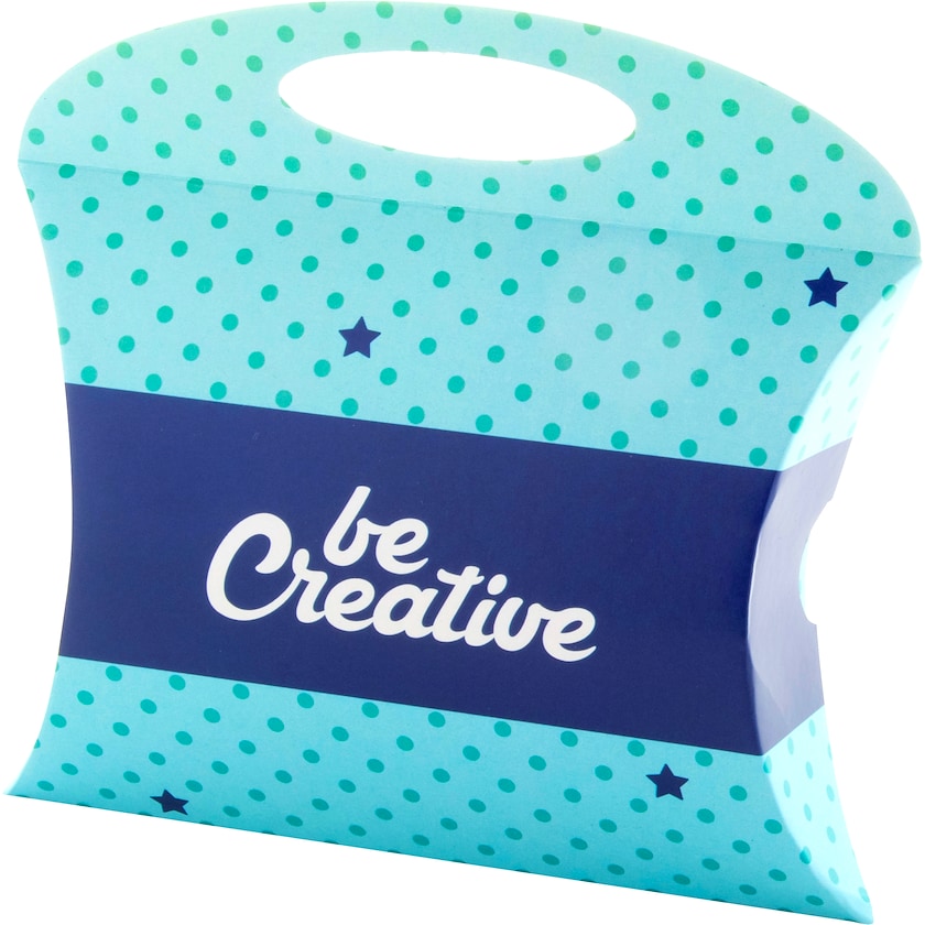 Liten presentkartong med handtag. Hela utsidan trycks efter dina önskemål. Levereras omonterade och platta.