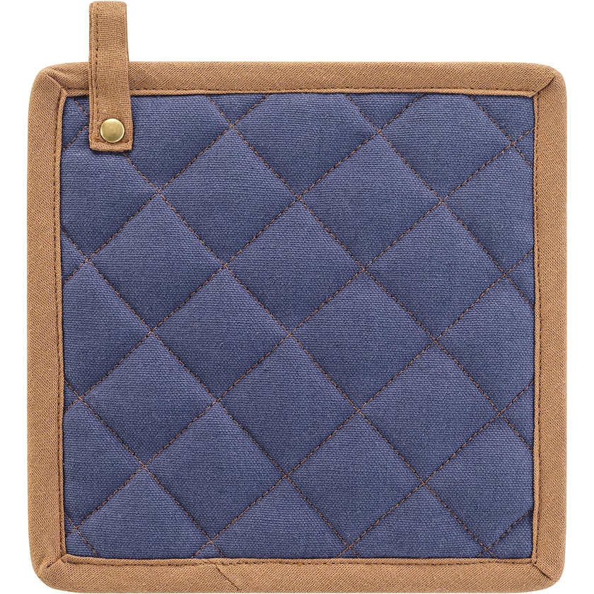 Vacker grytlapp av bomull. I ena hörnan finns en ögla. Trycket sker på baksidan.