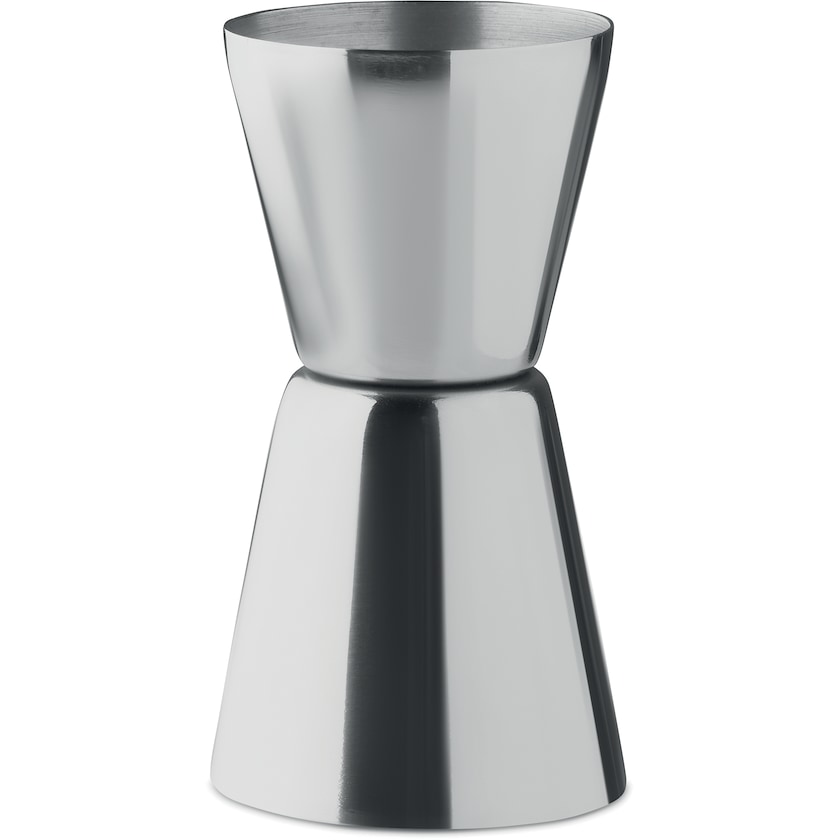 Drinkmått av rostfritt stål. Drinkmåttet har volymerna 25 samt 40 ml. Märkning sker med lasergravyr.