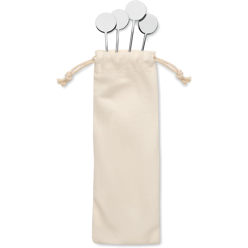 Set med 4 drinkpinnar av rostfritt stål. Välj mellan två färger. Trycket sker på förvaringspåsen och lasergravyren på en av drinkpinnarna.
