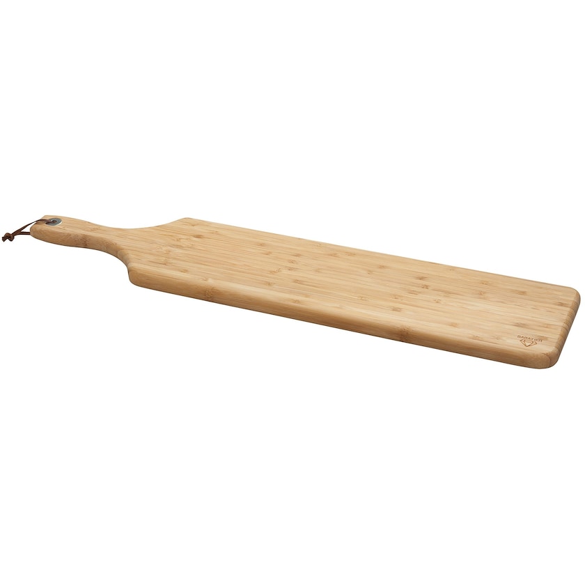 Avlång skärbräda som också fungerar som uppläggningsfat. Saint-Leu är tillverkad av stark och vacker bambu som är polerad och därmed lätt att rengöra. Handtaget är försett med ett lädersnöre med en metallring.