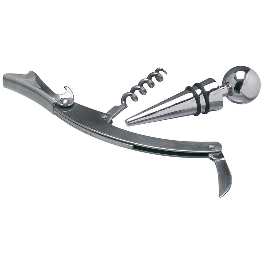 Elegant presentset innehållande vinöppnare och flaskförslutare.