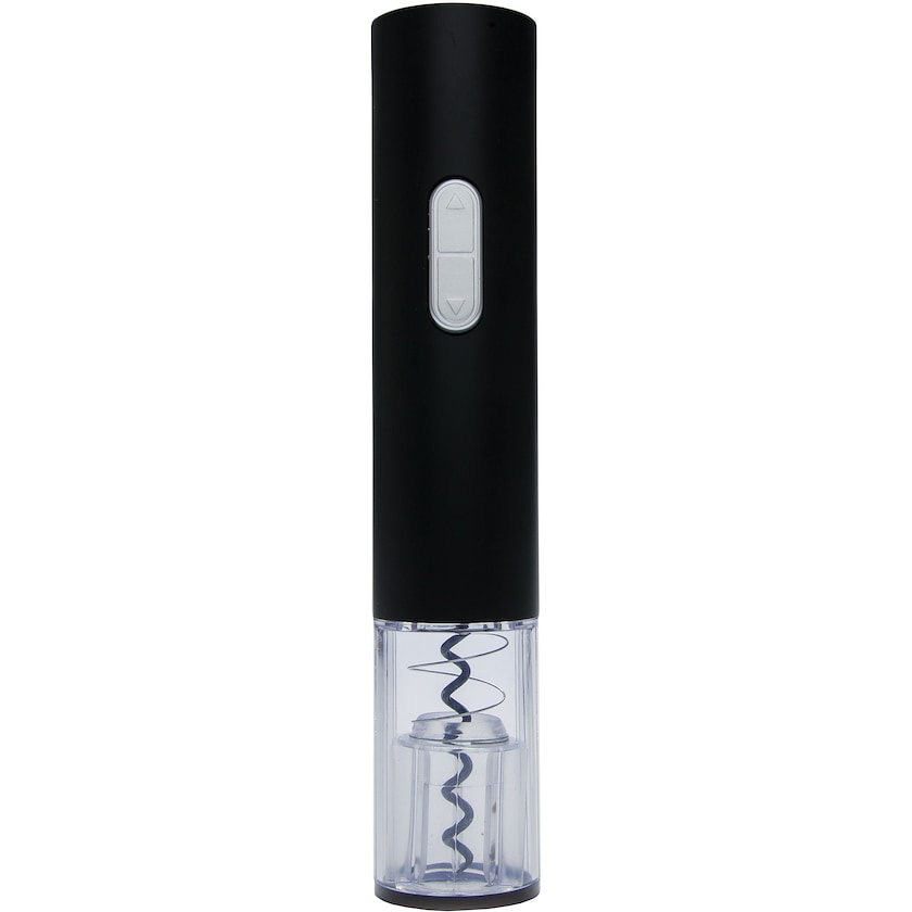 Elektrisk vinöppnare som öppnar vinflaskan med en enkel knapptryckning. Drivs med 4 st AA-batterier (ingår). Levereras i presentlåda av papp.