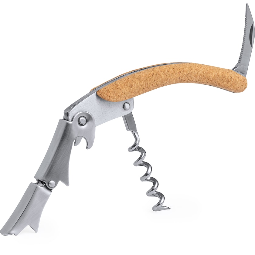 Vinöppnare av rostfritt stål och kork. Märkning sker med lasergravyr. En exklusiv vinöppnare med unikt utseende.