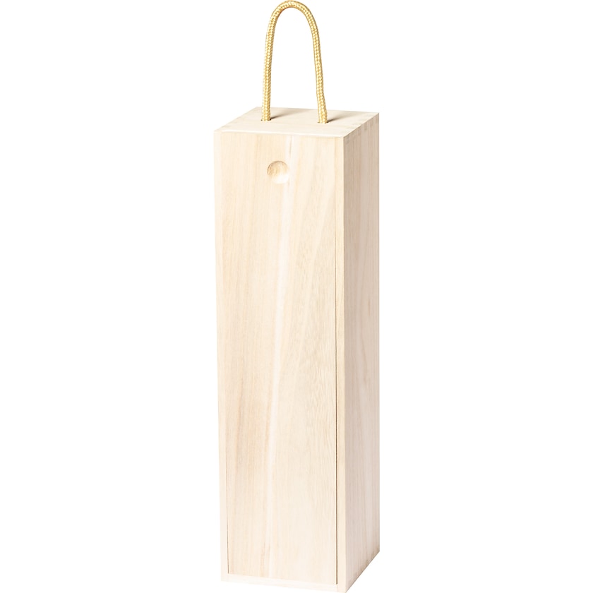 Trevlig vinlåda av trä. Vinlådan rymmer en vinflaska och märkning sker antingen med tryck eller lasergravyr.