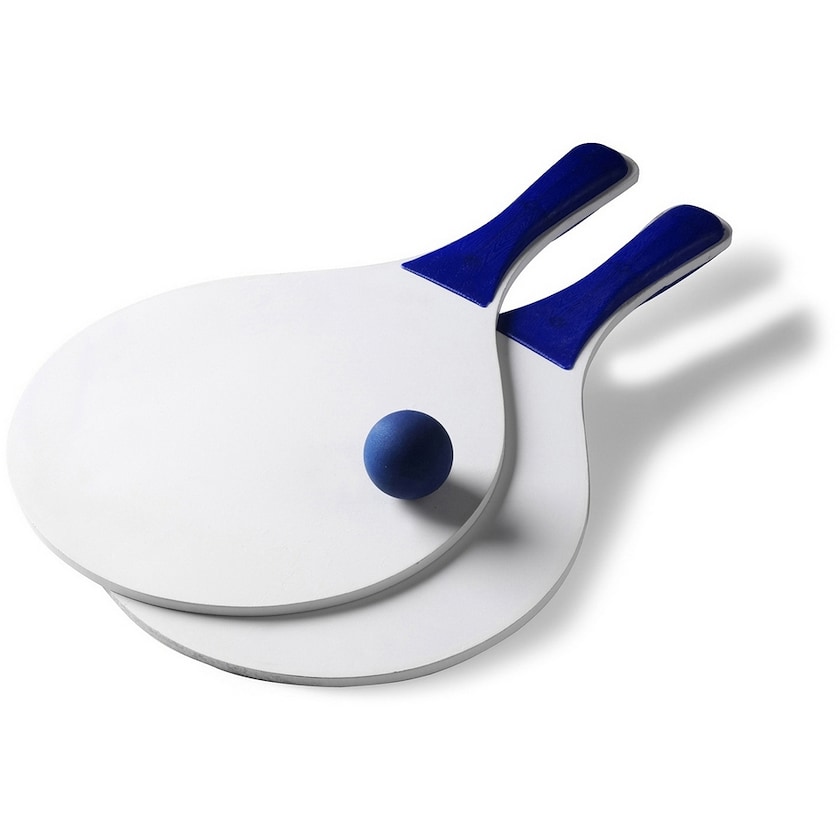 Ett strandtennis-set är ett måste på stranden. Tryck sker på båda racken.