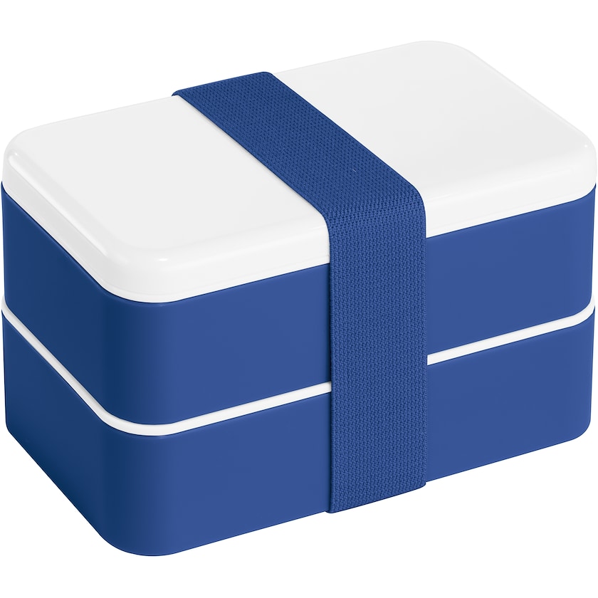 Prisvärd matlåda med bestick. Matlådan har två utrymmen varav det ena har en avtagbar vägg. Tas locket av kan matlådan köras i mikrovågsugn. Tryckytan vid tryck i maximalt två färger är hela 140 x 60 mm.