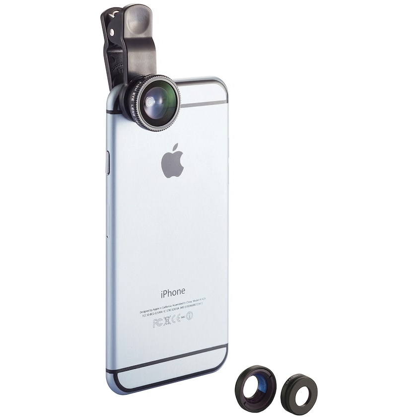 Kameralins till mobiltelefonen. Tar din mobilkamera till en ny nivå. Tre olika linstyper medföljer: fish eye, makro och vidvinkel. En svart förvaringspåse medföljer. Trycket sker på förvaringspåsen. Levereras i en snygg presentlåda. Beställ kameralinser med tryck hos Axon Profil!