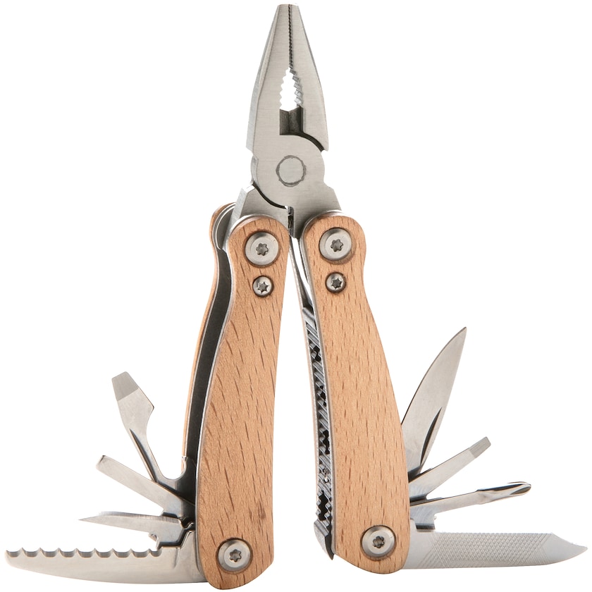 Kompakt multiverktyg av bok och rostfritt stål. Garrix har 12 funktioner och levereras i en snygg presentlåda.