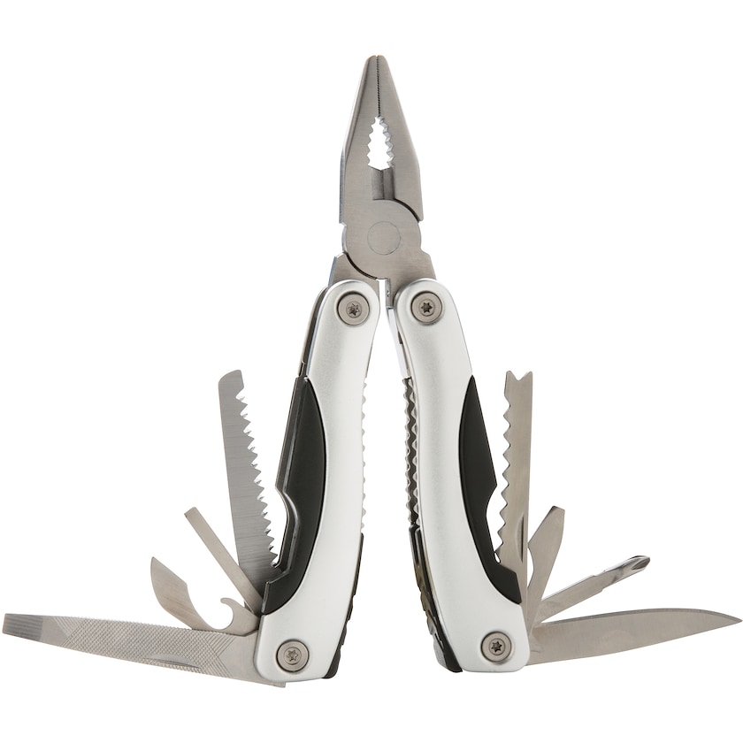 Multiverktyg av aluminium med 14 funktioner. Levereras i ett praktiskt förvaringsfodral.