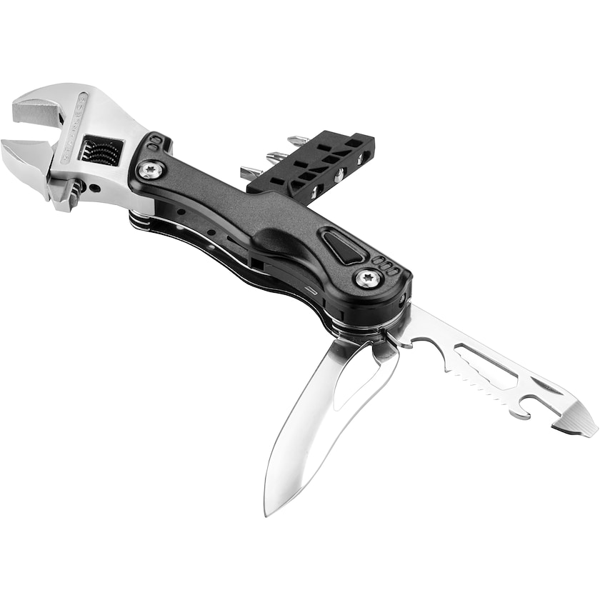 Multiverktyg med bland annat en skiftnyckel. River har nio smarta funktioner. Levereras med ett praktiskt förvaringsfodral.