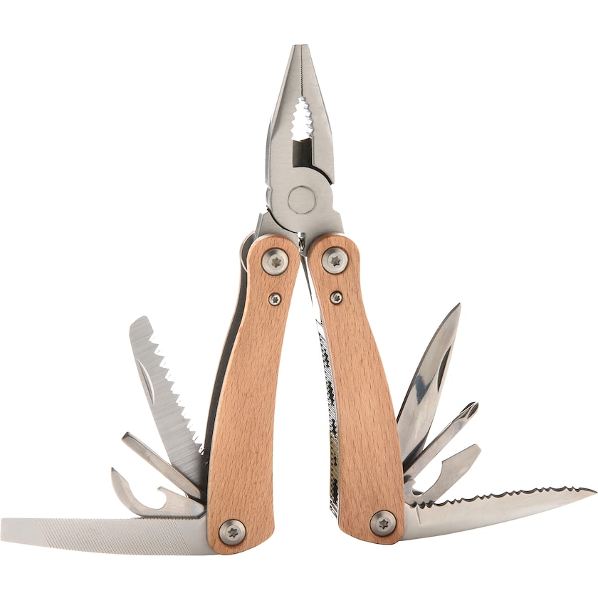 Stark och tålig multiverktyg med hölje av äkta bok. Westford har 13 olika verktyg som alla är tillverkade av rostfritt stål. Levereras i en snygg presentlåda.